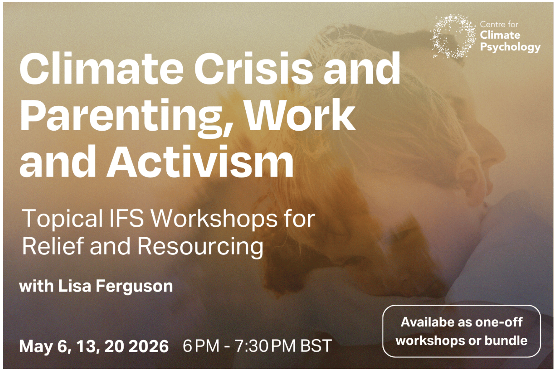 The climate crisis affects all areas of our lives, from home, work, politics, organizing, our environment and our emotions. In this series of 3 sessions, you’ll have an opportunity to work with specific topics that arise for you in the arenas of parenting, work and activism.
